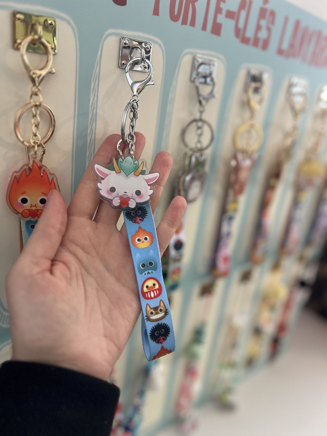 Le combo parfait: un solide porte-clés en acrylique, doublé d'une jolie lanière en satin aux couleurs vives!